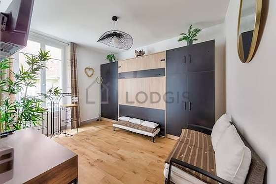 SalaõEste apartamento é composto de um salão janelas vitros duplos é vista sobre pátio. Este salão mobiliado et equipado para uma agradável estância : televisaõ, lençois, colchas, sofá, mesa de jantar, roupeiro, prateleira, guarda-roupa, armário, 1 cadeira(s), mesinha de cabeceira, airer, floor lamp, mirror, painting, set of tables, vase1 cama de criança, 1 cama embutida no muro.