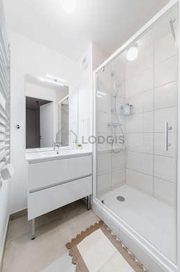 Este apartamento é equipado de uma casa de banho. Esta sala de água dispõe do necessário pelo seu bem estar na sua vida quotidiana : armário, ducheiro separado, sink, radiator secador de toalhas. Os WC são separados da casa de banho e situados em uma peça independente.