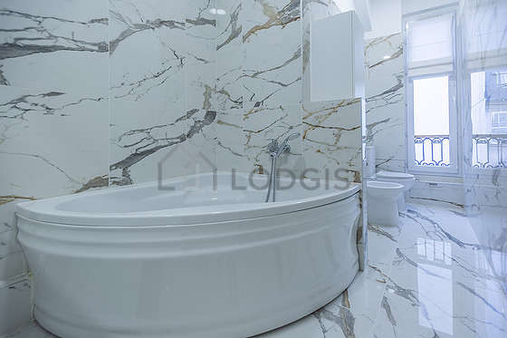 Este apartamento é equipado de uma casa de banho. Esta sala de água dispõe do necessário pelo seu bem estar na sua vida quotidiana. Os WC são separados da casa de banho e situados em uma peça independente.