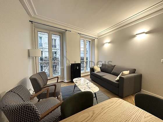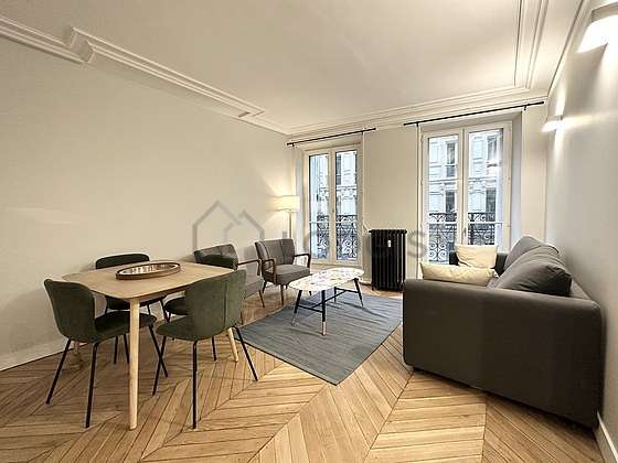 SalaõEste apartamento é composto de um atraente salão com parqué no piso é janelas com balcão. Este salão calmo mobiliado et equipado para uma agradável estância : sofá, mesa de jantar, mesinha, 1 cadeira(s).