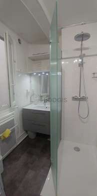 Este apartamento é equipado de uma casa de banho magnífico é muito clara. Esta sala de água dispõe do necessário pelo seu bem estar na sua vida quotidiana : toalhas de banho, prateleira, armário, ducheiro separado, secador, sink, mirror, towel rack, radiator secador de toalhas, ventilator. Os WC são separados da casa de banho e situados em uma peça independente.