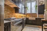 Este dúplex tem uma cozinha e todo o equipamento pela sua vida quotidiana : fogaõ, frigorífico, congelador, forno, microondas, exaustur, torradeira, máquina de café, loiça.