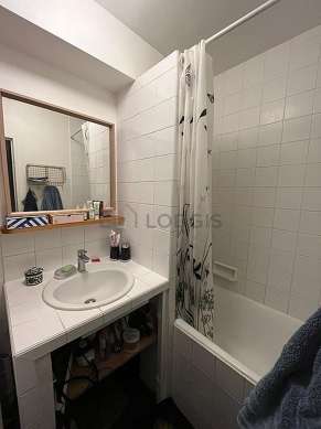 Este apartamento é equipado de uma casa de banho. Esta sala de água dispõe do necessário pelo seu bem estar na sua vida quotidiana : toalhas de banho, prateleira, banheira, sink. Os WC são separados da casa de banho e situados em uma peça independente.