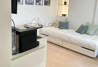 SalaõEste apartamento é composto de um salão com parqué no piso é janelas. Este salão mobiliado et equipado para uma agradável estância : televisaõ, lençois, colchas, 1 poltrona(s), mesa de jantar, secretária, armário, 1 cadeira(s)1 cama embutida.