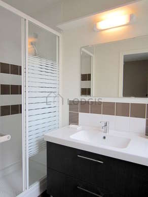 Este apartamento é equipado de uma casa de banho agradável é clara with janelas. Esta sala de água dispõe do necessário pelo seu bem estar na sua vida quotidiana : toalhas de banho, armário, ducheiro separado. Os WC são separados da casa de banho e situados em uma peça independente.