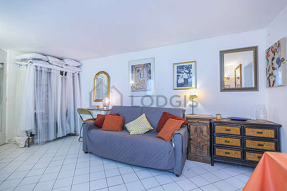 SalaõEste apartamento é composto de um magnífico salão com azuleijo no piso é janelas vitros duplos. Este salão very quiet mobiliado et equipado para uma agradável estância : televisaõ, sofá, mesa de jantar, secretária, comoda, 1 cadeira(s).