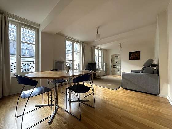 SalaõEste apartamento é composto de um salão janelas. Este salão mobiliado et equipado para uma agradável estância : televisaõ, sofá, mesa de jantar, 1 cadeira(s).