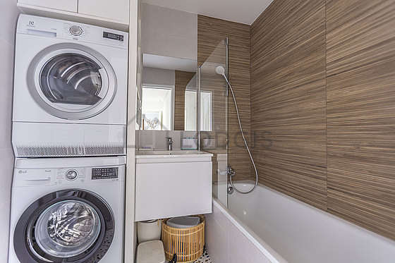 Este apartamento é equipado de uma casa de banho. Esta sala de água dispõe do necessário pelo seu bem estar na sua vida quotidiana : banheira. Os WC são separados da casa de banho e situados em uma peça independente.
