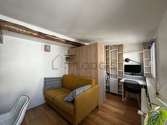 SalaõEste apartamento é composto de um salão janelas vitros duplos. Este salão mobiliado et equipado para uma agradável estância : secretária, roupeiro, biblioteca, prateleira, armário, 1 cadeira(s)1 sofá-cama.