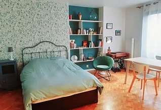SalaõEste apartamento é composto de um salão janelas vitros duplos. Este salão mobiliado et equipado para uma agradável estância : colchas, 1 poltrona(s), mesa de jantar, secretária, biblioteca, 1 cadeira(s)1 cama.