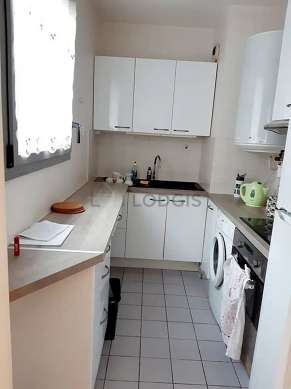 Este apartamento tem uma cozinha e todo o equipamento pela sua vida quotidiana : fogaõ, congelador, forno, exaustur, torradeira, chaleira, máquina de café, prateleira, armário.