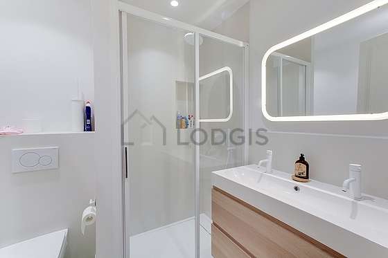 Este apartamento é equipado de uma casa de banho. Esta sala de água dispõe do necessário pelo seu bem estar na sua vida quotidiana : ducheiro separado. Os WC são integrados na casa de banho.