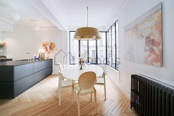 A fim de partilhar suas refeições no ambiente de convivialidade durante sua estância em Paris, este apartamento dispõe de uma sala de jantar graças a mesa de jantar, 1 cadeira(s).