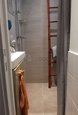 Este apartamento é equipado de uma casa de banho. Esta sala de água dispõe do necessário pelo seu bem estar na sua vida quotidiana : ducheiro separado, sink. Os WC são separados da casa de banho e situados em uma peça independente.