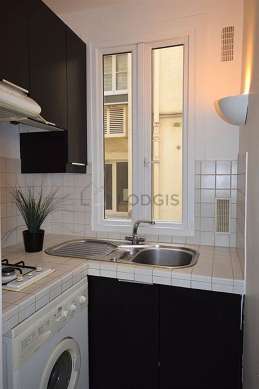 Este apartamento tem uma cozinha e todo o equipamento pela sua vida quotidiana : fogaõ, frigorífico, congelador, exaustur.