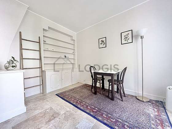 A fim de partilhar suas refeições no ambiente de convivialidade durante sua estância parisiense, este apartamento dispõe de uma agradável sala de jantar que pode acolher até 2 convivas graças a mesa de jantar, prateleira.