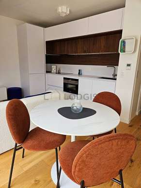 Este apartamento tem uma magnífico cozinha com parqué no piso e todo o equipamento pela sua vida quotidiana : fogaõ, frigorífico, congelador, forno, micro-ondas combinado, torradeira, chaleira, máquina de café, mesa de jantar, armário, loiça.