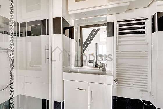 Graças a sua altura de teto, um mezanino foi possível de ser instalado em este apartamento , oferecendo-lhe uma verdadeira peça suplementar equipada de lençois, colchas, secretária, prateleira, mesinha de cabeceira.