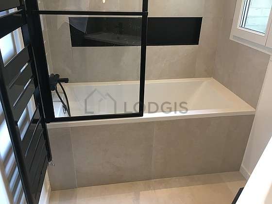 Este apartamento é equipado de uma casa de banho. Esta sala de água dispõe do necessário pelo seu bem estar na sua vida quotidiana : banheira, sink, mirror, radiator secador de toalhas. Os WC são separados da casa de banho e situados em uma peça independente.