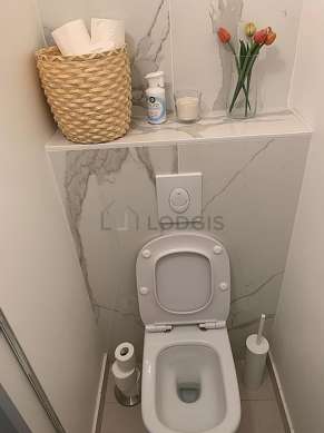 Este apartamento é equipado de uma casa de banho. Esta sala de água dispõe do necessário pelo seu bem estar na sua vida quotidiana : ducheiro separado, sink. Os WC são separados da casa de banho e situados em uma peça independente.