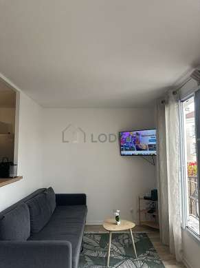 SalaõEste apartamento é composto de um salão janelas vitros duplos. Este salão mobiliado et equipado para uma agradável estância : televisaõ, sofá, mesa de jantar, mesinha, prateleira, 1 cadeira(s).