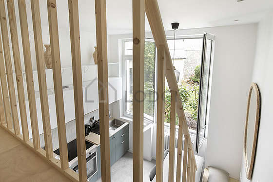 Graças a sua altura de teto, um bonita mezanino foi possível de ser instalado em este apartamento , oferecendo-lhe uma verdadeira peça suplementar equipada de armário.