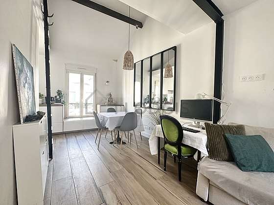 Graças a sua altura de teto, um mezanino foi possível de ser instalado em este apartamento , oferecendo-lhe uma verdadeira peça suplementar.