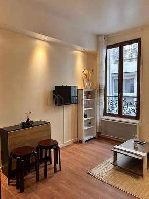 SalaõEste apartamento é composto de um salão janelas vitros duplos. Este salão mobiliado et equipado para uma agradável estância : televisaõ, sofá, mesa de jantar, mesinha, banco.