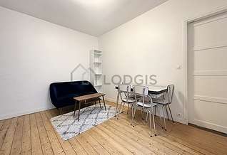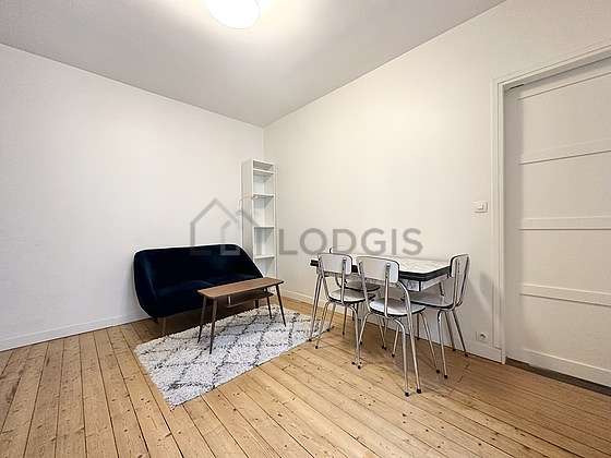 SalaõEste apartamento é composto de um atraente salão com parqué no piso é janelas é vista sobre rua. Este salão calmo mobiliado et equipado para uma agradável estância : sofá, mesa de jantar, mesinha, 1 cadeira(s).