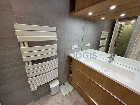 Este apartamento é equipado de uma casa de banho. Esta sala de água dispõe do necessário pelo seu bem estar na sua vida quotidiana : banheira, radiator secador de toalhas. Os WC são separados da casa de banho e situados em uma peça independente.