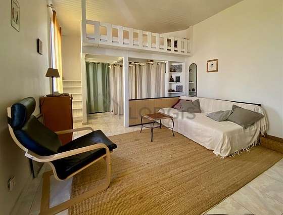 Graças a sua altura de teto, um mezanino foi possível de ser instalado em este apartamento , oferecendo-lhe uma verdadeira peça suplementar.
