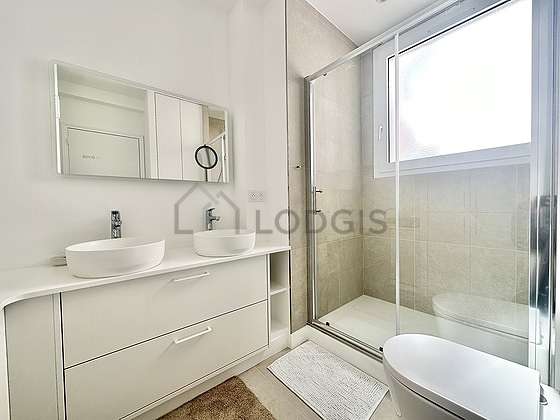 Este apartamento é equipado de uma casa de banho agradável é clara. Esta sala de água dispõe do necessário pelo seu bem estar na sua vida quotidiana : ducheiro separado, sink. Os WC são integrados na casa de banho.