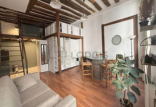 Graças a sua altura de teto, um mezanino foi possível de ser instalado em este apartamento , oferecendo-lhe uma verdadeira peça suplementar equipada de televisaõ, lençois, colchas, roupeiro, prateleira, comoda, armário, mesinha de cabeceira, entry way table, mirror, carpet.