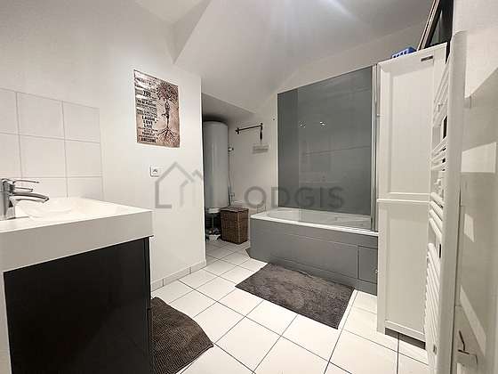 Este apartamento é equipado de uma casa de banho agradável é clara. Esta sala de água dispõe do necessário pelo seu bem estar na sua vida quotidiana : prateleira, banheira, sink, radiator secador de toalhas. Os WC são separados da casa de banho e situados em uma peça independente.