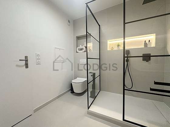 Este apartamento é equipado de uma casa de banho agradável é clara. Esta sala de água dispõe do necessário pelo seu bem estar na sua vida quotidiana : ducheiro separado, sink. Os WC são integrados na casa de banho.