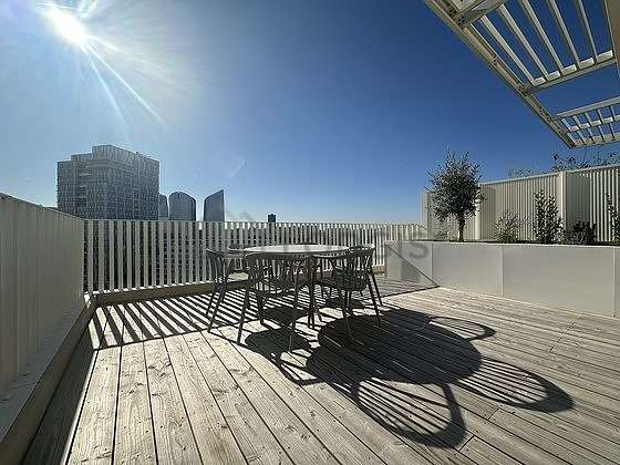 O terraço de este apartamento vai lhe encantá-lo. Este espaço exterior calmo é luminoso é equipado de mesa de jantar permitindo-lhe aproveitar plenamente de sua estância em Paris, sobretudo os dias de sol.