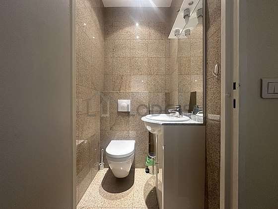 Este apartamento é equipado de uma casa de banho. Esta sala de água dispõe do necessário pelo seu bem estar na sua vida quotidiana. Os WC são separados da casa de banho e situados em uma peça independente.