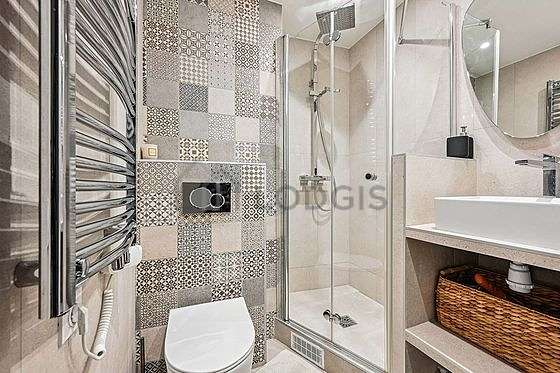 Este apartamento é equipado de uma casa de banho. Esta sala de água dispõe do necessário pelo seu bem estar na sua vida quotidiana : ducheiro separado, sink, radiator secador de toalhas. Os WC são integrados na casa de banho.