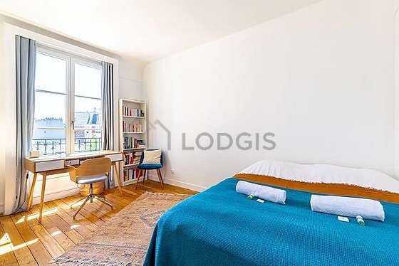 Com parqué no piso é janelas é vista sobre pátio, este quarto esplêndido oferece o equipamento necessário para descansar durante sua estância : secretária, biblioteca, prateleira, armário, 1 cadeira(s)1 cama.