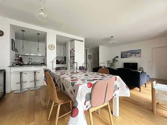 Este apartamento é composto de um atraente salão com parqué no piso é janelas vitros duplos. Este salão calmo mobiliado et equipado para uma agradável estância : televisaõ, sofá, mesa de jantar, biblioteca, comoda, 6 cadeira(s).