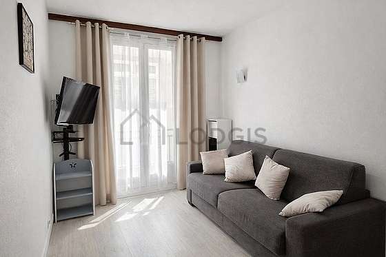SalaõEste apartamento é composto de um salão com parqué no piso é janelas. Este salão mobiliado et equipado para uma agradável estância : televisaõ, curtains1 sofá-cama.