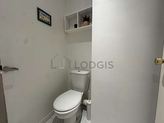 Este apartamento é equipado de uma casa de banho agradável é clara. Esta sala de água dispõe do necessário pelo seu bem estar na sua vida quotidiana : armário, banheira, sink, radiator secador de toalhas. Os WC são separados da casa de banho e situados em uma peça independente.