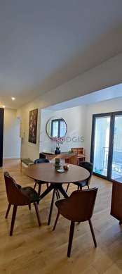 Este apartamento é composto de um salão com parqué no piso é janelas. Este salão mobiliado et equipado para uma agradável estância : sofá, mesa de jantar, mesinha, 1 cadeira(s).