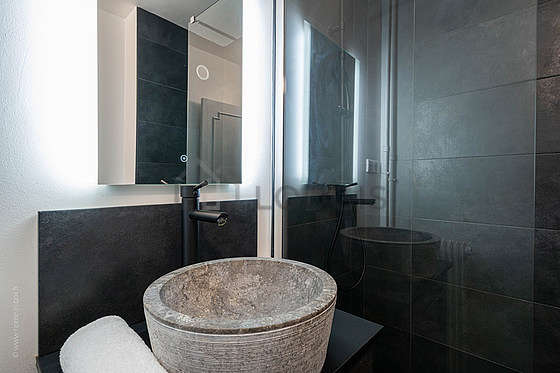 Este apartamento é equipado de uma casa de banho. Esta sala de água dispõe do necessário pelo seu bem estar na sua vida quotidiana : ferro, ducheiro separado, sink. Os WC são separados da casa de banho e situados em uma peça independente.