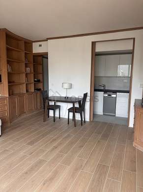 SalaõEste apartamento é composto de um salão janelas. Este salão mobiliado et equipado para uma agradável estância : mesa de jantar, biblioteca, prateleira, 2 cadeira(s)1 cama.