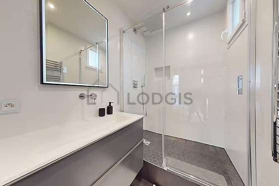 Este apartamento é equipado de uma casa de banho magnífico é muito clara. Esta sala de água dispõe do necessário pelo seu bem estar na sua vida quotidiana : ducheiro separado, sink. Os WC são separados da casa de banho e situados em uma peça independente.