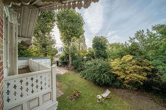 Esta casa dispõe de uma varanda com azuleijo no piso. Uma verdadeira peça suplementar equipada de sofá, esta varanda forma a tornar sua estância em Paris ainda mais agradável no cotidiano.