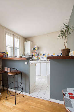 Este apartamento tem uma magnífico cozinha com azuleijo no piso e todo o equipamento pela sua vida quotidiana : fogaõ, frigorífico, forno, microondas, torradeira, máquina de café, loiça, electrodomésticos, banco, bar.