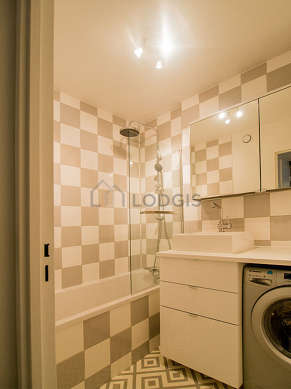 Este apartamento é equipado de uma casa de banho agradável é clara. Esta sala de água dispõe do necessário pelo seu bem estar na sua vida quotidiana : toalhas de banho, prateleira, banheira. Os WC são separados da casa de banho e situados em uma peça independente.
