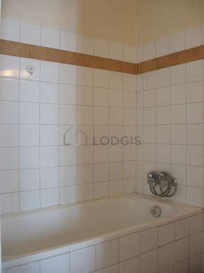 Este apartamento é equipado de uma casa de banho. Esta sala de água dispõe do necessário pelo seu bem estar na sua vida quotidiana : toalhas de banho, armário, banheira. Os WC são separados da casa de banho e situados em uma peça independente.